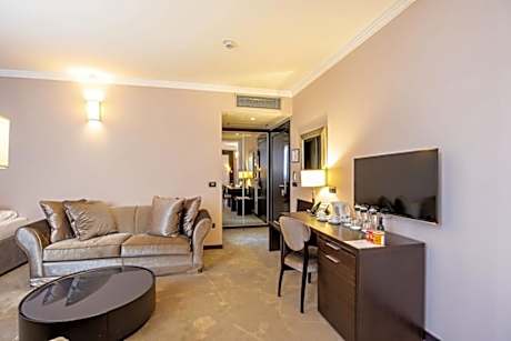 Offering an on-site restaurant, Hotel Constantine the Great enjoys a central location in Belgrade in the vicinity of the Botanical Garden and Knez Mihailova pedestrian street. Its elegantly decorated rooms are air-conditioned and offer free WiFi access. Each room is equipped with a seating area and an LCD TV. The modern bathroom comes with a bathrobe, a hairdryer and a bidet. In our lobby, guests can enjoy a self-service corner with a variety of drinks and snacks. The restaurant offers various choices of the best international and national dishes, while buffet breakfast is served daily. Guests can relax at an on-site bar. Hotel Constantine the Great provides a 24-hour front desk service, a banquet hall and business facilities. Within a short walking distance many cultural and historical sites can be explored, such as the House of National Assembly, Tasmajdan park, Kalemegdan Park with Belgrade Fortress, and the bohemian Skadarlija area. The nearest local bus stop is just 164 feet away, while a tram stop is located 328 feet from the property. Belgrade Bus Station is 1.1 mi away. Belgrade Nikola Tesla Airport is 11 mi from the property.
