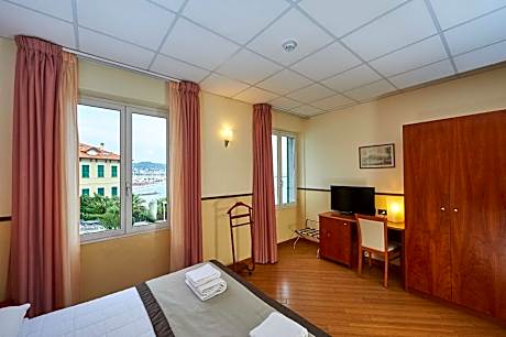 A few steps from the sandy beach in Porto Maurizio, Hotel Corallo features a sea-view sun terrace and panoramic restaurant. It offers air-conditioned rooms. Overlooking the Ligurian Sea, all rooms at the Corallo Hotel have an elegant and modern décor and private bathroom. Each comes with wooden or carpeted floors. Some rooms feature a spa bath and balcony. Italian cuisine is served at the restaurant, where guests can dine indoors or al fresco. A continental-style breakfast is served daily. On-site facilities also include a garden, and a bar. The hotel is set on a bay rich in water-sports facilities, and the town's marina is 1148 feet away. The A10 Autostrada dei Fiori motorway is a 5-minute drive away and Imperia is 2.2 mi north.