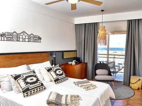 The Family Rooms with Pool View at the Hotel Coral Cotillo Beach provide a spacious 29m2 setting for a comfortable stay. These rooms feature two single beds, 1 sofa bed and 1 extra bed, fridge, coffee machine with integrated water heater, tray with coffee, tea, milk and sugar as well as air conditioning, safety deposit box, LED lights, Satellite Television 32", telephone, bathroom with bathtub, hair dryer and free Wi-Fi. Hotel Cotillo Beach offers gardens and a children’s play area. You can relax on a lounger on the poolside terrace. The newly renovated property also features of an indoor gym, an outdoor crossfit gym with calisthenics and a climbing wall, as well as a 5-a-side soccer field. It also offers a cycling center to store bicycles and a facility to store surfboards. Decorated in warm colors, each room at Hotel Cotillo Beach offers a fan and a rental safe. The private bathroom includes a hairdryer. The hotel’s 24-hour reception offers car rental and free parking can be found nearby. Corralejo is 12 mi away, while Fuerteventura Airport is a 45-minute drive away.