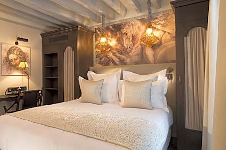 Offering a patio, Hôtel Da Vinci & Spa is located in Saint-Germain-des-Prés district of Paris, 1969 feet from the Louver Museum. Free WiFi access is available and there is a spa at guests' disposal for a surcharge. Each room features a flat-screen TV, a mini-bar and air conditioning. The rooms include a private bathroom with a bath or a shower, a hairdryer and bathrobes. Breakfast is served daily for an additional fee. The hotel also has an on-site bar. At Hôtel Da Vinci & Spa you will find a 24-hour front desk, a tour desk, luggage storage and dry cleaning. At an extra cost and upon prior booking, guests can enjoy a 45-minute session in the swimming pool. Massages are available with a surcharge. Hôtel Da Vinci & Spa is 2297 feet from the Musée d’Orsay and 2625 feet from the Tuileries Garden.