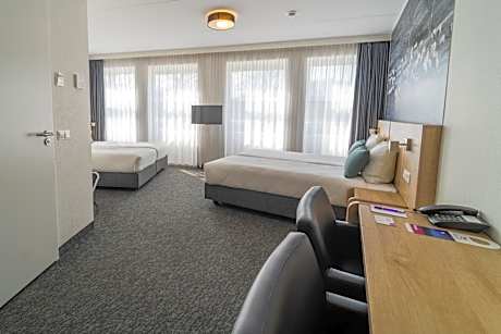 Hotel De Bonte Wever Assen is located near to Asserbos on the city limits of Assen, 10 minutes' drive from the TT Circuit. It offers modern and well-furnished guestrooms, all equipped with air conditioning and flat-screen TV. Each unit comes furnished with work desk. Free WiFi is available throughout. Hotel Hotel De Bonte Wever Assen is located just 1.2 mi from the A28 motorway. Assen city center and the Drents Museum Assen is a 5-minute drive away. The center of Groningen is 30 minutes' drive away. Groningen Airport Eelde is 20 minutes away by car. Free on-site, private parking is available. Hotel Hotel De Bonte Wever Assen has a well-equipped swimming pool with a sauna and relaxation room. You can also indulge in relaxing body treatments or work out in the hotel gym. The property also offers facilities for table tennis, billiards, darts and computer games.