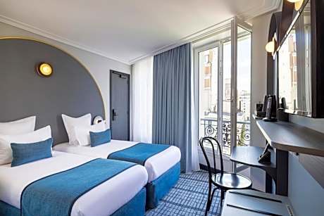 These air-conditioned quadruple rooms feature soundproofing and offer views of the street. The private bathroom is equipped with a shower, a toilet and a hairdryer. A welcome tray will be provided in the room upon arrival and extra features in the room include a mini fridge, safe-deposit box, a flat-screen TV with Canal+ and free WiFi.