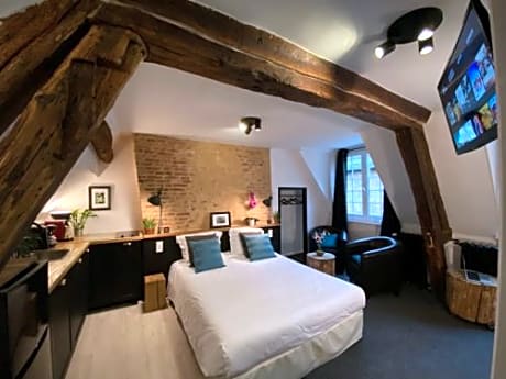 Set just 164 feet from the Rouen Cathedral, in the heart of the city's historic center, this hotel has a timber-framed façade dating from the 17th century and is located 2.5 mi from the Kindarena Stadium. Guests are invited to enjoy afternoon tea in a room leading onto the patio. Secure and paid public parking is available nearby. All of the individually decorated rooms feature flat-screen TVs and cable channels, and some include a lounge area. The private bathrooms at Hotel De La Cathédrale are equipped with hairdryers. A buffet-style breakfast can be enjoyed every morning in the hotel's breakfast room, decorated in a traditional Norman style. The Rouen-Rive-Droite Train Station is located just 1 mi from the hotel and the Church of St. Ouen is a 5-minute walk away.