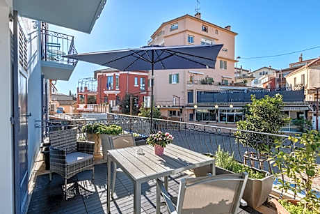 This room has a private balcony with a view of the Place de la Fontaine. Some of these rooms have a sea view. This room offers an Smart TV