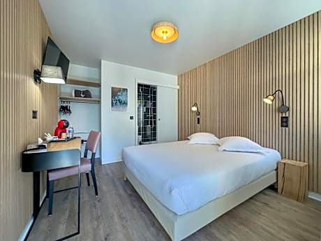 Located in front of Quimper SNCF Train Station, Hôtel De La Gare is a 10-minute walk from the city center. It offers rooms facing a quiet street with free WiFi, TV and private bathroom. Every morning Hôtel De La Gare serves a continental breakfast. Guests can relax in the bar or on the floral patio. Hôtel De La Gare is easily accessible by the N165/ E60 motorway, and provides private parking with an additional cost. It is 6.2 mi from Quimper-Cornouaille Airport, and a 25-minute drive from Benodet beach.