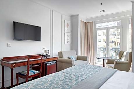 Each air-conditioned room features a private balcony, flat-screen satellite TV, Wi-Fi connection, and a private bathroom. Guests can enjoy traditional Basque cuisine with sea views at the hotel's Mari Galant Brasserie or sip cocktails at the English-style Swing Bar, which boasts a seafront terrace.