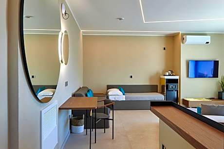 This air-conditioned single room is consisted of of a flat-screen TV with satellite channels, a private bathroom as well as a balcony with sea views. The unit has 1 bed.