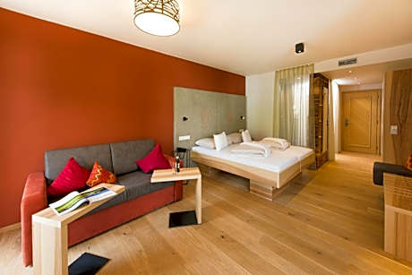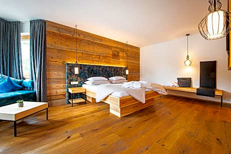 The Hotel Der Löwe in Leogang combines sustainable luxury with alpine coziness, embedded in the beautiful tranquility of the village of Leogang. The 45 modern rooms and suites offer the highest level of comfort and are furnished by the regional carpenter with plenty of wood and natural materials. Particularly luxurious suites score points with a private sauna, free-standing bathtub and open fireplace - for unforgettable moments of well-being. All rooms also have balconies or terraces with a view of the impressive Leogang Steinberge. Sustainability is the focus: From the charging station for electric vehicles to regional food and tree planting campaigns - ecological responsibility is a top priority here. The spacious wellness area invites you to relax: An indoor and outdoor pool heated all year round, 3 saunas, infrared cabin & relaxation areas with panoramic views as well as massage & beauty treatments with natural cosmetics offer relaxation for all the senses. In the exclusive LEONARIUM Adults-Only area, adults can enjoy peace and relaxation above the rooftops of Leogang, while families can relax in the separate SPA area. Active holidaymakers can start hikes directly from the hotel or visit Europe's largest bike park just 1.9 mi away (Leo guests receive a 15% discount on the bike park ticket at The Epic Bike Park). The hotel offers a modern CUBE e-bike rental, a secure bike garage and a bike washing facility. In winter, the hotel's own ski shuttle takes guests to the entrance to the Saalbach-Hinterglemm-Leogang-Fieberbrunn ski circus in just a few minutes. Cross-country ski trails and winter hiking trails are also in the immediate vicinity. Culinary The hotel's regional cuisine focuses on freshness and sustainability and allows you to immerse yourself in the culinary diversity of the Pinzgau region. Every day, guests enjoy a gourmet breakfast with front cooking and a 5-course menu (also vegetarian). Vegan dishes are available on request. In the afternoon, homemade cakes from our own patisserie tempt you (plus hearty soup in winter). The Madreiter family and their lion-strong team have been a warm host family for over 100 years and love to give all guests a relaxing holiday. Your hosts look forward to seeing you! Best wishes, Barbara & Rupert Madreiter and the entire lion team