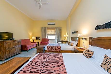 Great care is taken to ensure guests experience comfort through top-notch services and amenities. Experience the wonders of Ranthambore with ease by utilizing the services provided at shuttle.Parking is accessible, supplied by the resort for guests who arrive by car.During leisurely days and evenings, in-room amenities such as 24-hour room service, room service and daily housekeeping enable you to maximize your stay in the room. In limited designated zones, smoking is exclusively permitted. Crafted for coziness, every guestroom provides an array of features, guaranteeing a tranquil night's sleep while maintaining the level of comfort. For a more enjoyable stay, select rooms at resort are equipped with linen service and air conditioning. At Hotel Dev Vilas, a selection of rooms can be found that showcase unique design elements such as a balcony or terrace. Expand your in-room entertainment choices with various amenities, such as television offered in certain accommodations.In select rooms, the resort offers visitors access to a refrigerator.It is worth noting that certain guest bathrooms feature a hair dryer, toiletries and bathrobes for your convenience. Each morning at Hotel Dev Vilas, a scrumptious, homemade breakfast kick-starts the day.During your visit, indulge in a range of delightful culinary choices at resort to enhance your experience.Experience a fantastic evening effortlessly! Relish an entertaining night without venturing beyond the confines of the bar.Hotel Dev Vilas provides a superb assortment of leisure amenities for guests to enjoy.At the resort, enjoy a laid-back beverage experience by the poolside bar, sipping on a soothing cocktail.Eliminate those holiday calories by stopping by resort and making use of their well-equipped exercise amenities.