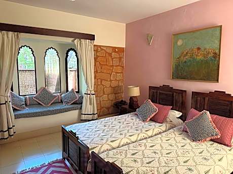 At Devi Bhawan, exceptional service and top-notch amenities create a memorable experience for guests. Complimentary internet access is available in the hotel to ensure you stay connected during your visit. Arrange your trips to and from the airport using the hotel's convenient transportation services booking. Discover the wonders of Jodhpur with ease by utilizing the services provided by taxi, car hire and shuttle.Complimentary parking is available for guests.Continuously receive the support you require through front desk amenities such as express check-in or check-out, luggage storage and safety deposit boxes. At the hotel, their ticket service and tours is also capable of assisting with booking tickets and securing reservations for entertainment and adventures.Always look your best in your preferred attire with the dry cleaning service and laundry service provided at Devi Bhawan.Craving relaxation? In-room amenities such as room service and daily housekeeping allow you to maximize your time spent inside the room. Due to health concerns, smoking is strictly prohibited within the entire premises of hotel.For the health and well-being of all guests and staff, smoking is restricted exclusively to assigned zones. Accommodations come equipped with all the conveniences required for a restful night's slumber. A selection of rooms feature linen service and air conditioning to ensure your comfort and convenience.A few accommodations at Devi Bhawan also include unique design elements like a balcony or terrace.A few chosen rooms are equipped with daily newspaper, television and cable TV to ensure guest amusement. In certain rooms, the hotel offers visitors access to a coffee or tea maker and bottled water. Devi Bhawan offers a hair dryer and toiletries in the restrooms of specific accommodations. A delightful breakfast is the perfect way to begin your day, and at Devi Bhawan, you can always indulge in a scrumptious meal on-site.Allow your journey to be free from the pangs of hunger! On-site eateries offer delicious and accessible meal choices. At Devi Bhawan, guests can take pleasure in the delightful recreational amenities provided for their entertainment.Conclude your days in complete tranquility by visiting the massage situated precisely at the hotel.At Devi Bhawan, a wide array of amenities guarantees a fulfilling experience throughout your visit. Make your holiday truly memorable by taking a rejuvenating plunge into the pool.