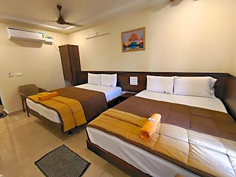 HOTEL DKR GRAND provides flawless service and all the necessary facilities for visitors. Stay connected with your associates, as complimentary Wi-Fi is available during your entire visit. The hotel offers taxi and car hire amenities for your ease in navigating around Tirupati. When arriving by car, take advantage of the hotel's convenient on-site parking facilities. Whether you're here for an extended stay or simply require fresh garments, the hotel ensures your cherished travel attire remains spotless and accessible with the convenience of laundry service located on the premises. In order to ensure the utmost level of relaxation, the guestrooms feature an inviting design and are equipped with all basic necessities, creating a delightful stay experience.To ensure your satisfaction, certain rooms in the hotel come fitted with air conditioning for a more pleasant stay. Several chosen accommodations at HOTEL DKR GRAND have a balcony or terrace incorporated into the room design. Selected rooms offer in-room amusement like television as a source of entertainment for guests to enjoy. You'll be pleased to know that select guest bathrooms offer bathroom amenities such as toiletries, ensuring a comfortable stay.