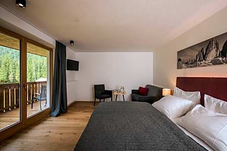 Overlooking the Sextner Rotwand Mountain and featuring a seating area, this room has a satellite TV, free Wi-Fi, and mini-bar. Its private bathroom comes with shower, hairdryer, and slippers.