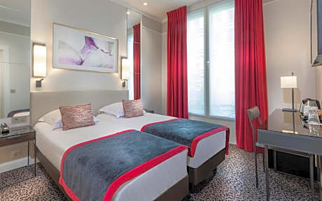 Just a 5-minute walk from the Arc de Triomphe and Avenue Champs Elysées, this 3-star hotel is 1476 feet from Victor Hugo Metro Station. It offers free Wi-Fi access and rooms featuring an LCD TV with international channels. Blending cream and chocolate brown tones, the rooms at Hôtel Du Bois Champs-Elysées offer a mini-bar. All rooms are air-conditioned and also feature tea and coffee making facilities and a flat-screen TV with cable channels like beIN Sports channel. Each room has a private bathroom fitted with a shower, a hairdryer and free toiletries. A continental breakfast is available with a supplement. It is served every morning in Hôtel Du Bois’s breakfast room. Additional hotel facilities include babysitting services and tickets for museums and Disneyland Paris. An airport shuttle from the airport to the hotel can be arranged at an extra cost. The Eiffel Tower is a 20-minute walk from the hotel and Porte Maillot Congress Center is 15 minutes away on foot. Guests can also use public transport to access the Sacré Coeur and the Moulin Rouge.