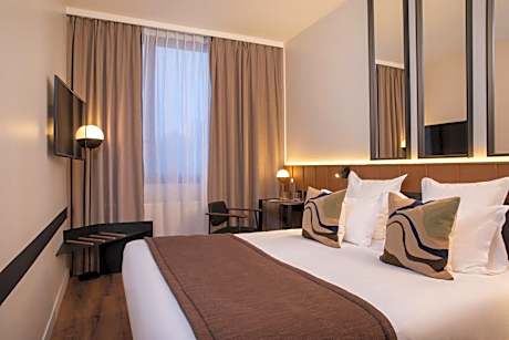 Renovated in 2020 and located at the marina of Nogent sur Marn, Hôtel du Port is 9.3 mi from Paris and features room with warm and wooden decor. Private parking is available. The RER E is a 10-minute walk away. The RER A is 20 minutes away on foot giving direct access to the Arc de Triomphe and La Defense business district. All rooms and suites at the Hôtel du Port have a private bathroom featuring warm earthy tones. Private parking is provided at Hôtel du Port, making it easy to explore the Île-de-France region by car. The RER E is a 10-minute walk away, and the RER A is 20 minutes away on foot. This gives direct access to the Arc de Triomphe and La Defense business district.