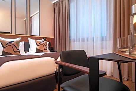 The double room features air conditioning, soundproof walls, as well as a private bathroom boasting a walk-in shower and a hairdryer. The double room provides a tea and coffee maker, a safe deposit box, parquet floors, heating and a TV. The unit has 1 bed.
