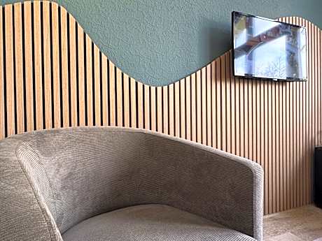 Soundproofed room offering a flat-screen TV and a private bathroom.