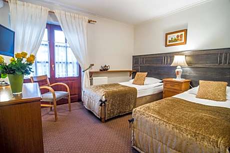 Hotel Dwa Księżyce is located in the center of Kazimierz Dolny, boasting a view of the River Vistula and the Castle Ruins. This 3-star hotel offers a 24-hour front desk, private parking, and air-conditioned rooms with free Wi-Fi. The rooms feature individual interior design. Each comes with a private bathroom with a shower and free toiletries. There also is a TV and a mini-bar. Some have a balcony or a terrace, as well as a safe. Guests are welcome to dine in the air-conditioned restaurant which specializes in Polish cuisine and offers a selection of wines and other beverages. Each evening live piano music is played. For guests keen on active recreation, Dwa Księżyce provides bicycle rental and ski storage. In the garden there is a playground for children. The hotel is 1148 feet from the Market Square. The 16th century Parish Church is 820 feet away.