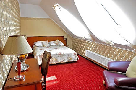 Located in a quiet area on the outskirts of Białystok, the Dworek Tryumf hotel offers every guest a relaxing holiday and unforgettable stay in elegant and comfortable rooms. The peaceful and green area creates the atmosphere of relaxation far from the big citys noise. Elegant rooms are very stylish and decorated in warm colors. In the comfortable rooms guests will feel like in an aristocratic residence. Guests will admire beautiful wooden furniture, stylish wallpaper and cozy lighting that will guarantee them relaxation and a good nights sleep. Rooms are equipped with a bathroom, TV, mini-bar (in some rooms), telephone and free Internet access. Rooms for disabled and nonsmokers are also available. The Ruby dinning room offers tasty Polish and European cuisine. Dishes served here will satisfy all guests. The original interior design creates exceptional climate that allows guests enjoy the elaborate flavors of our dishes. This beautiful manor house is the ideal place to hold your conference or banquet.