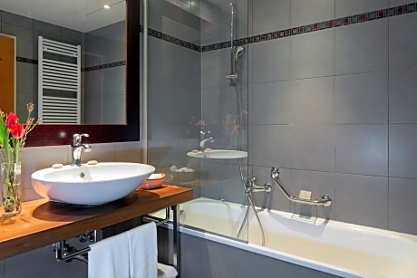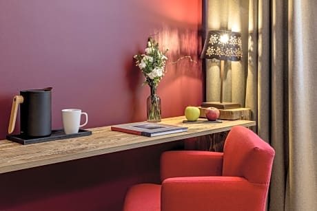 This family room features a mini-bar and air conditioning. It is fitted with double glazing windows, a safety deposit box, a tea and coffee maker and a work desk. It also offers a direct dial phone and an alarm clock.