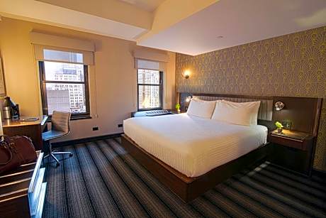 Hotel Edison, a historical gem since 1930, stands majestically in the vibrant heart of Times Square, Manhattan. The hotel, with its striking Art Deco design, captures the essence of the era both in its majestic lobby and its imposing exterior. It's an ideal destination for travelers seeking a blend of history, style, and convenience in the bustling city of New York.