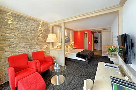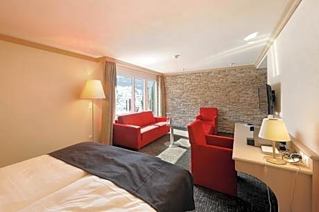 ☆☆☆☆ - Eiger Mountain & Soul Resort with uncomplicated charm. Innovative ide-as for well-being, nature experience and entertainment. Year-round operation. Rooms, suites, flats and chalets. Cottage romance in Barrys Restaurant, Bar & Lounge. Supervised fitness, SPA, private SPA and massages. The Eiger is a charming resort in the heart of Grindelwald only a few minutes' walk from cable cars, trains and shops, and offers you superb views of glaciers. You have free access to the wellness center featuring a supervised fitness area, saunas and a trendy lounge. The Eiger resort also offers reduced admission to the nearby sports center (swimming pool and ice skating rink). A private spa including a mountain herb bath in a twin bath tub, a mountain pine scented cocoon sauna, a foot bath with peeling and lotion, as well as snacks and drinks is available upon prior arrangement. The Barrys Restaurant Bar & Lounge inspires with its authentic mountain ambiance. Private outdoor and garage parking spaces are available for an extra charge.