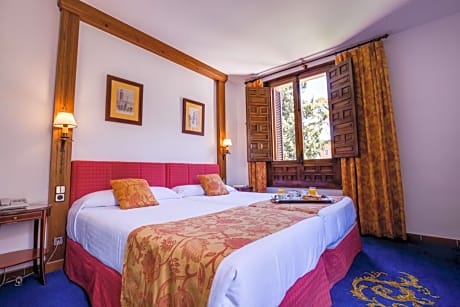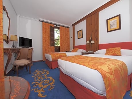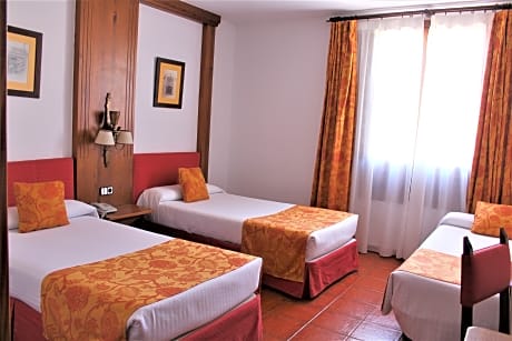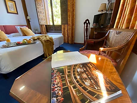 Hotel El Bedel, ideally located in the heart of the charming city of Alcalá de Henares, a UNESCO World Heritage Site, offers an unforgettable stay with modern amenities and a warm atmosphere. Enjoy complimentary WiFi throughout the hotel, and relax in rooms equipped with air conditioning, flat-screen TVs, and all the comforts you need for a restful stay. Each room comes with a telephone, safe box, and a private bathroom featuring a relaxing bath. For those seeking an added touch of luxury, our deluxe rooms offer a private balcony with views of the vibrant streets below. Heating is available to ensure your comfort, whatever the season. Our 24-hour reception is ready to assist you with any requests, including providing valuable tourist information about the area. We also offer a variety of convenient services such as luggage storage, currency exchange, a cozy restaurant, café, and room service to enhance your stay. Private parking is available nearby. Step outside and explore the lively city center—within a 5-minute walk, you'll find an array of shops, restaurants, and bars. The iconic Cervantes Square is just 197 feet away, while the stunning Cathedral and the Archaeology Museum are a mere 8-minute stroll. With Madrid City Center just 30 minutes away by train from Atocha Station, and Madrid-Barajas Airport 8.7 mi away from the hotel, Hotel El Bedel is perfectly positioned for both leisure and business travelers alike.