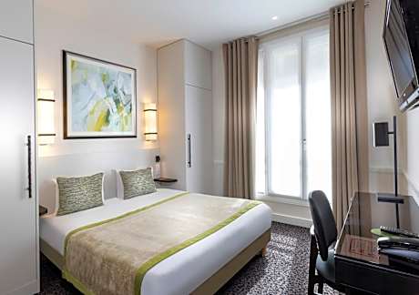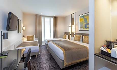 Set in a 19th-century building in Paris, Elysées Union features an interior garden and offers air-conditioned rooms and apartments. It is located just a 12-minute walk from the Eiffel Tower. Satellite TV is included in each soundproofed room and apartment. Guest rooms have a classic décor and a private bathroom with a hairdryer. Kitchenettes in the apartment include a microwave and fridge. A continental breakfast is served every morning in the breakfast room at Elysées Union. Guests can enjoy a drink in the hotel bar lounge. With a 24-hour reception, Elysées Union operates a ticket service for shows, trains and airlines. The Arc de Triomphe and the Champs Elysées with its luxury boutiques is a 12-minute walk from the hotel. Iéna Metro Station is just 427 feet away, providing direct access to Galeries Lafayette.