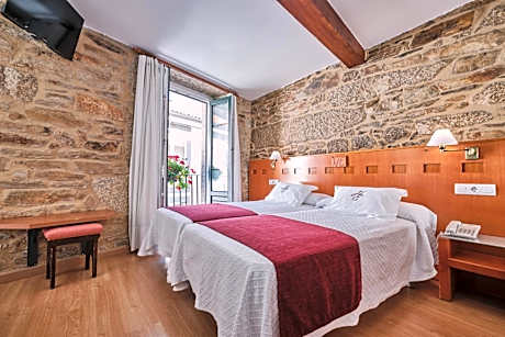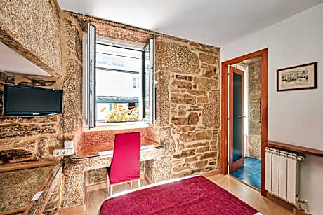 Situated in the heart of Santiago de Compostela, this small, friendly hotel offers some of the city’s most affordable accommodations. Only 165 yards from the cathedral, this hotel is ideally placed for exploring the city on foot. The owner has sensitively restored the old stone building, retaining its ancient stonework and exposed and time-blackened wooden beams. The guest accommodations are simply but comfortably decorated, each with a small private bathroom with shower. Stay connected to home and business with our free Wi-Fi service.