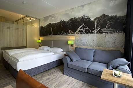Located on a large estate at the recreation park Het Hulsbeek and only 8.7 mi from Ootmarsum, this hotel offers modern rooms set in contemporary accommodations. It has a large garden with a pond. The spacious rooms at Hotel Erve Hulsbeek offer garden views and a flat-screen TV. Some open onto a terrace with views over the pond. All rooms have a semi-open plan bathroom, and some include a spa bath. Guests can enjoy a meal in the restaurant, which opens onto a terrace. Barbecues and high teas are available on request. If you feel like visiting the surroundings, Hengelo and Enschede can both be reached in a 20-minute drive.