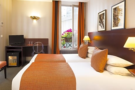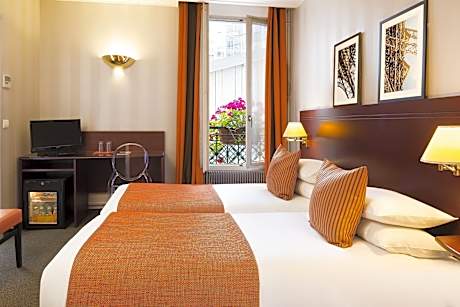Located on the outskirts of Paris, this contemporary hotel features a terrace decorated with Japanese-style floral bouquets. It features free Wi-Fi access and a 24-hour reception. The guest rooms are brightly decorated and some rooms feature a mezzanine level. Each room is equipped with a flat-screen TV. All rooms have a private bathroom including amenities and a hairdryer. At the Hotel Espace Champerret, there is a choice between a continental and a buffet breakfast. Guests can take breakfast on the terrace while reading the newspapers provided. With public parking available nearby, the Espace Champerret hotel is located 1.7 mi from the famous Champs Elysees. Louise Michel Metro Station is just 262 feet away.