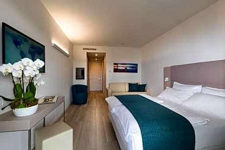 Watch the sun rise from behind the mountains at Hotel Europa, an elegant and well-equipped hotel, surrounded by olive groves and gardens and set directly on Lake Garda’s shores. Located across from Monte Baldo, the Europa enjoys a unique location in a peaceful area of Sirmione. Sit out on the hotel’s fully-equipped private beach and take in the views. Relax taking a walk in the rose garden. There is also an on-site swimming pool and the hotel has its own private jetty. On the beach you can take wind and kite-surfing lessons or rent a pedal-boat. Bicycles are also available at Hotel Europa. Famous golf courses and spas are located nearby. Buses leave for Gardaland and Caneva World theme parks from a stop nearby. Hotel Europa can arrange guided tours of historic Sirmione.