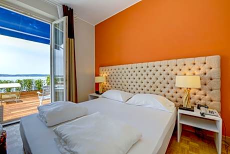 As one of the first hotels in Sirmione, this family-run property features a privileged lakeside position. Hotel Flaminia offers a sun terrace, tastefully decorated interiors and free Wi-Fi. All rooms at Hotel Flaminia feature vibrant colors and each is equipped with satellite TV and a telephone. Some rooms feature full views of Lake Garda. Guests can relax on the sunny terrace with deck chairs and beach umbrellas. The thermal wellness and spa center is 1640 feet away and offers a variety of health and beauty treatments. Other nearby activities include boat trips, cycling and Nordic walking. Transfer to the Golf Club, Arena di Verona, and Train Station is available on request.