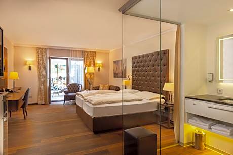 The 4-star Hotel Friesacher is located in Anif’s center, 3.1 mi outside of Salzburg. It offers a cocktail bar, a wellness center and a heated outdoor pool. The restaurant serves products from the hotel’s own farm. A mini-bar and telephone are standard in all rooms. Each has private bathroom with a shower or bathtub, bathrobes and a hairdryer. Spa facilities include steam baths, sauna, modern gym and solarium. You can also book a massage or beauty treatment. The spa relaxation room has waterbeds and direct access to the poolside terrace. The cocktail bar at Friesacher Hotel offers several lounge rooms with comfortable leather armchairs and fireplaces. The menu includes Austrian wines, cocktails and cigars. You can also visit the modern lounge bar, which plays DJ music. At the restaurant, you can sample many traditional recipes and delicious Austrian desserts. There is also a large garden terrace.