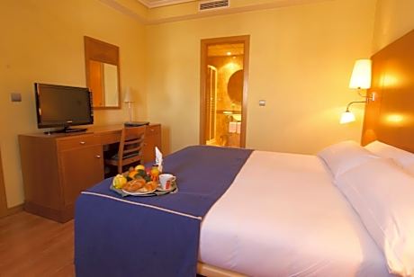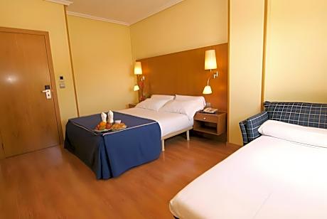 Hotel Galaico is located in Collado Villalba, 20 minutes by train from Madrid city center. It offers a private parking, and free Wi-Fi. All rooms at the Galaico are air-conditioned and feature parquet floors. They come with satellite TV and a private bathroom with a hairdryer. Guests can make use of a fitness center located 2297 feet away for a surcharge. There is also a bar where you can get a snack or a drink. The Continental Breakfast includes orange juice, coffee or tea or hot chocolate and bread rolls or toast with butter and jam. The hotel has a 24-hour front desk, allowing you more flexibility during your stay. It also offers a car rental service. Private parking is available for an extra cost. The Galaico is just 20 minutes’ drive from the 16th-century palace of El Escorial. Segovia with its famous aqueduct can be reached in 35 minutes, by car.