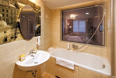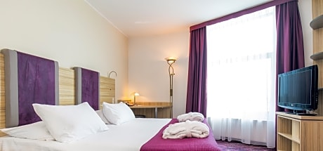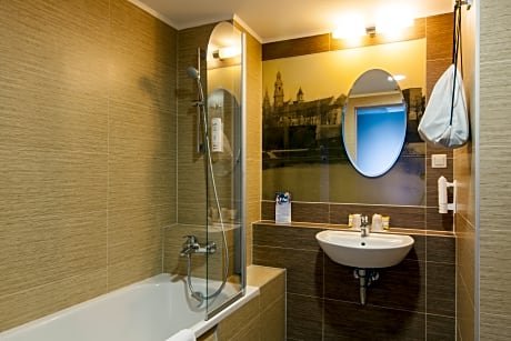 Located over the Vistula River, in Kraków’s Podgórze district, the luxurious Galaxy Hotel offers a spa center. The rooms feature an LCD TV with satellite channels. The rooms at the Galaxy come with tea and coffee facilities and a large work desk. All are modernly furnished and air-conditioned. The elegant bathroom has a hairdryer. The price of all rooms includes access to the hot tub, saunas, swimming pool, and fitness center. The spa offers a wide range of beauty and relaxation treatments. Guests have access to a computer with a printer and an internet connection in the lobby. Galaxy Hotel is just a 10 minute walk from the Kazimierz Jewish District, full of atmospheric pubs and cafés. The walk to the Main Market Square takes only 25 minutes, while the Wawel Castle is a 20 minute walk from the hotel. The on-site restaurant overlooks the Vistula River and serves international cuisine from 12 pm until 11 pm. Guests are also offered 2 bars –in the lobby and in the restaurant.