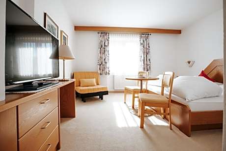 This mountain-style room features satellite flat-screen TV, a private bathroom with hairdryer and mountain views. It comes with carpeted floors and wooden furnishings.