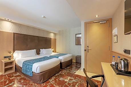 Hotel Gótico is 165 ft from Barcelona’s Jaume I Metro Station and a 2-minute walk from Barcelona Cathedral. It features a rooftop terrace, and stylish, air-conditioned rooms with satellite TV. Soundproof rooms are heated and feature beautiful tile floors. They have a safe and work desk, and the private bathroom comes with a hairdryer and amenities. Guests can enjoy a breakfast buffet in the Gótico hotel café-bar, which features impressive stone arches. Packed lunches can be requested and there are vending machines for drinks and snacks. There's a 24-hour front desk, and you can rent a car from the tour desk. Parking is available nearby for an extra charge. The hotel is just a 5-minute walk from La Rambla.