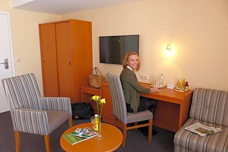 The Hotel Hansa is located in the historic center of Herford, just 656 feet from Herford Minster. It offers well-equipped rooms with free Wi-Fi, parking and a traditional café. Every room at the Hotel Hansa has modern furniture, cable TV channels and a work desk. A large breakfast buffet is served each morning in the bright Hansa-Café. A variety of cakes and pastries are also available here throughout the day. Guests can park for an additional fee in the large Parkhaus Altstadt multi-story car park, 98 feet from Hotel Hansa. Herford Train Station is 0.6 mi away.