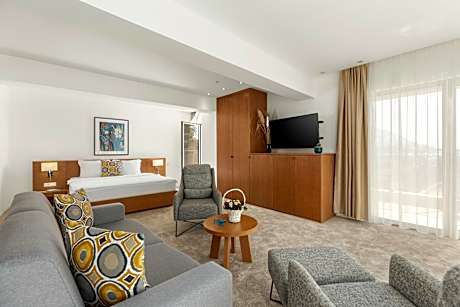 Located in Budva, a 3-minute walk from Dukley Beach, Hotel Harmonia by Dukley provides accommodations with a private beach area, private parking, a shared lounge and a terrace. Featuring a seasonal outdoor swimming pool, the 4-star hotel has air-conditioned rooms with free WiFi, each with a private bathroom. Guests can use the spa and wellness center with a sauna, hot tub, and hammam, as well as a bar. Guest rooms are equipped with a flat-screen TV with cable channels, minibar, an electric tea pot, a shower, free toiletries and a closet. Certain rooms include a kitchen with a fridge, a dishwasher and an oven. All rooms include a safety deposit box. A buffet, continental or Italian breakfast is served at the property. At the hotel you'll find a restaurant serving Mediterranean, Middle Eastern and Asian cuisine. Vegetarian, dairy-free and halal options can also be requested. Hotel Harmonia by Dukley has a playground. There's a kids' club for the children and guests can use of the business center. Speaking English, Russian and Serbian, staff will be happy to provide guests with practical guidance on the area at the reception. Sveti Stefan is 4.9 miles from the accommodation, while Kotor Clock Tower is 15 miles from the property. Tivat Airport is 12 miles away, and the property offers a paid airport shuttle service.