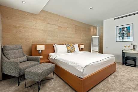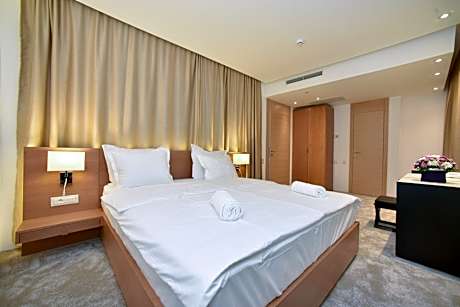 Located in Budva, a 3-minute walk from Dukley Beach, Hotel Harmonia by Dukley provides accommodations with a private beach area, private parking, a shared lounge and a terrace. Featuring a seasonal outdoor swimming pool, the 4-star hotel has air-conditioned rooms with free WiFi, each with a private bathroom. Guests can use the spa and wellness center with a sauna, hot tub, and hammam, as well as a bar. Guest rooms are equipped with a flat-screen TV with cable channels, minibar, an electric tea pot, a shower, free toiletries and a closet. Certain rooms include a kitchen with a fridge, a dishwasher and an oven. All rooms include a safety deposit box. A buffet, continental or Italian breakfast is served at the property. At the hotel you'll find a restaurant serving Mediterranean, Middle Eastern and Asian cuisine. Vegetarian, dairy-free and halal options can also be requested. Hotel Harmonia by Dukley has a playground. There's a kids' club for the children and guests can use of the business center. Speaking English, Russian and Serbian, staff will be happy to provide guests with practical guidance on the area at the reception. Sveti Stefan is 4.9 miles from the accommodation, while Kotor Clock Tower is 15 miles from the property. Tivat Airport is 12 miles away, and the property offers a paid airport shuttle service.