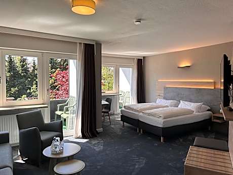 Most rooms includes a balcony with views of Bocksberg mountain.
