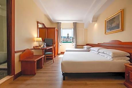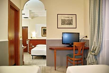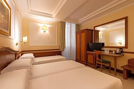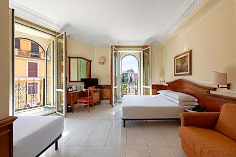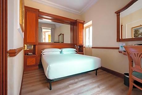 Hotel Hiberia is just a quarter mile from the Trevi Fountain, and offers air-conditioned rooms with a flat-screen satellite TV. The restaurant serves a large buffet breakfast, and classic Italian and international cuisine. The Hiberia is surrounded by Rome's attractions, including the Coliseum, just a 5 minute walk away. Frequent buses to Roma Termini Train Station leave from nearby. The multilingual staff is available 24 hours a day, and there is a luggage storage room. The rooms are simply decorated, with carpet or tile floors, and classic wood furniture. Each features a private bathroom which may be in-room or external.