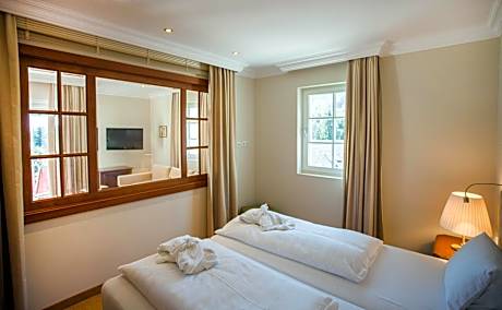 Located amid a sunny and quiet green space, Hotel Hollweger offers beautiful views of St. Gilgen, the mountains, and Lake Wolfgang. Here you will find comfortable, individually furnished rooms and suites, most of which have a balcony, a spacious spa area, and a light-flooded panoramic indoor pool. Enjoy culinary delights and refined cuisine in the elegant ambiance of the restaurant. Piano evenings, gala dinners and buffet evenings are hosted regularly. Half-board is available on request for the entire stay if you book 2 nights or more. The town center and Lake Wolfgang can be reached on foot in just a few minutes. The hotel owns a romantic bathing spot with a row boat on the lakeshore. The hotel offers a taxi service from and to the main train station and the airport of Salzburg at an extra cost. License Number(s): 50330-002431-2020