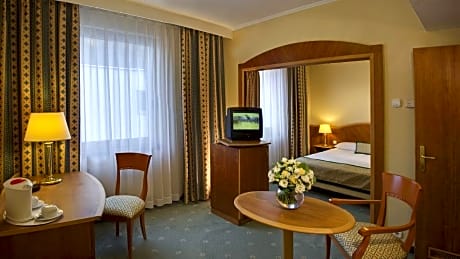 The Hotel Hungaria City Center enjoys a central location, 984 feet from the Keleti railway station. Free WiFi is available in all areas of the hotel. All rooms are air-conditioned and equipped with a satellite TV. Most of the exquisitely furnished rooms and suites offer superb city views. A rich breakfast buffet is served upon request every morning and fine Hungarian and international cuisine is served in the restaurants. Beauty services are provided for relaxation after a rewarding day. Underground guarded parking for private cars in the Hotel Hungaria City Center's garage is also available for your convenience for a surcharge, upon previous reservation. Please note due to a limited capacity the parking spot in the garage needs to be booked in advance. The garage is open from 6 am. to 10 pm.