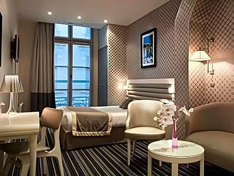 Ideally located in Paris’ stylish 2nd district, Hôtel ICÔNE is just a 10-minute walk from Opera Garnier and 656 feet from Richelieu-Drouot Metro Station. It features stylish, air-conditioned rooms. Each soundproofed room is individually decorated and pays tribute to different cinema icons. A flat-screen TV with satellite channels is provided in each room. Every weekday morning, breakfast can be delivered to guests’ rooms or selected from the buffet. The dining room features black and white decor and an open fireplace. Room service is available throughout the day. The front desk is open 24-hour and the staff are able to help organize car and bicycle rental. A ticket service for local shows and excursions is provided on site. Airport shuttles can also be arranged from the hotel. The famous Galeries Lafayette department store is 2133 feet from Hotel Icone. The Louver Museum is a 15-minute walk away.