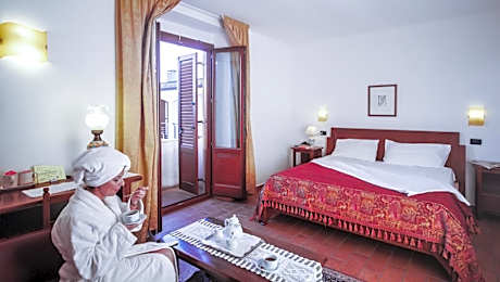 Air-conditioned room with satellite TV, a mini-bar and private bathroom with hairdryer.