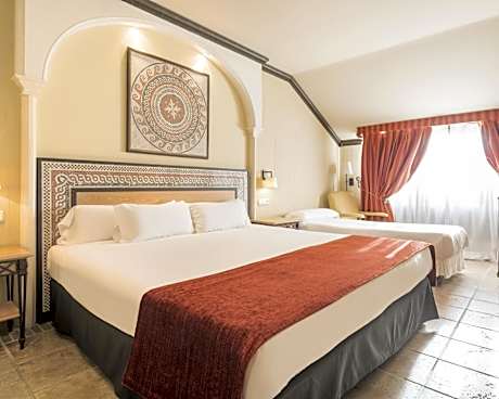 Located in Plaza de España Square, this restored 15th-century palace offers a rooftop terrace with a small seasonal pool and city views. Hotel Mérida Palace is 656 feet from the Roman Temple of Diana. Rooms at the Mérida Palace have elegant décor and feature air conditioning and free WIFI internet. Each room offers satellite TV, a mini-bar and a safe. Bathrooms include a hairdryer and toiletries. This hotel is officially adapted for guests with reduced mobility, accessible rooms are available on request, also for people with auditory and visual impairment. Guests can use the hotel’s gym and sauna, or relax in the peaceful interior courtyards. There is also an on-site tapas bar and a restaurant serving traditional Extremaduran cuisine. The Roman Amphitheater and Roman Art Museum are just a 10-minute walk from the Hotel Mérida Palace. Staff at the hotel can provide information about the city, a UNESCO World Heritage Site.