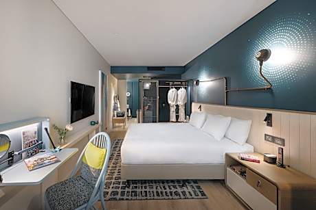 Designed to spark curiosity, Hotel Indigo Brisbane City Center brings it’s electric charm and hidden artistic flair to Brisbane City. Think street art-inspired interiors, quirky design details, and an electric atmosphere. Displaying large-scale works by Queensland artists, including Blends, Bronte Naylor and Fuzeillear, the hotel takes guests on a discovery trail of Brisbane’s hidden secrets. The hotels electric personality is evident from the moment you enter. Find a mural featuring escape artist Sammy the Bengal tiger, opposite the first-floor check-in. Guestrooms encompass retro vibes, with deep blue feature walls, industrial lighting, pop-up desks, sleek tiled ensuites and a tasty 24-hour in room dining menu. Hotel Indigo is home to Izakaya Publico, a stunning, street art-adorned Japanese restaurant accessed via speakeasy-inspired bar 1603. Gaze upon soaring ceilings, leather booths and colorful murals. The designed-to-share menu is a journey through Japanese favorites, both traditional and contemporary. The restaurant offers a delicious buffet breakfast for all hotel guests. Enjoy a convenient 820 ft walk to Brisbane Quarter, a foodies paradise, featuring popular restaurants Persone, Phat Boy, Tenya and Three Blue Ducks. Guests at Hotel Indigo receive complimentary access to adjacent rooftop pool and facilities at voco Brisbane City Center. Hotel Indigo Brisbane City Center is 0.6 mi from Roma Street Parkland & 1.4 mi from XXXX Ale House & Brewery Tours. Come for the stay, stay for the vibes!
