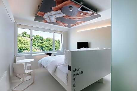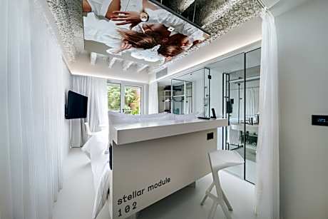 Located in the vibrant heart of Zagreb, Stellar Boutique Modules offers 48 cutting-edge, futuristic rooms that seamlessly blend a tranquil ambiance with the dynamic energy of urban life. The property features an exclusive rooftop terrace, reserved for guest use and available for private event rentals, boasting breathtaking starry views. Accommodations: - 48 air-conditioned rooms, each equipped with a flat-screen TV, work desk, and private bathroom featuring a shower and hairdryer. - Designed for comfort, ideal for work, relaxation, or socializing. Dining: - À la carte breakfast available (additional cost unless included in room booking; no buffet option). - Grab-and-go snacks and refreshing beverages are offered for convenience. Amenities: - Complimentary Wi-Fi throughout the property. - Pet-friendly accommodations with dog beds, food and water bowls, and floor mats available upon request, subject to availability. - Exclusive rooftop terrace for guests, showcasing panoramic starry views, and available for private event bookings. Location: - Centrally located, just 656 feet from a public parking garage. - Cvjetni Square is a 10-minute walk away, and Zagreb Cathedral is 1969 feet from the property. - Zagreb Airport is 12 mi away. Stellar Boutique Modules provides a sophisticated and modern retreat for travelers seeking both convenience and style in Zagreb’s bustling capital.