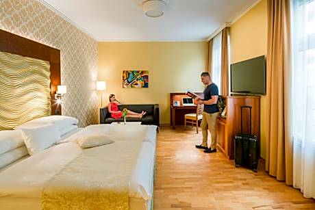 Combining the charm of historic Vienna with today’s contemporary lifestyle, the 4-star Hotel Josefshof am Rathaus is located in a quiet side street in the charming Josefstadt district, just a few steps away from famous sights like Vienna City Hall, the Museums Quarter and the Mariahilferstraße Shopping street. The rooms come with the highest state-of-the-art standards and reflect the classic flair of Vienna. Some rooms are inspired by famous artworks of the Austrian art-nouveau painter Gustav Klimt. A rich breakfast buffet is available daily from 07:00 to 12:00 and includes a wide range of coffee and tea specialties, homemade cakes, breads as well as fresh fruits and juices. Free WiFi is available throughout the Hotel Josefshof am Rathaus.